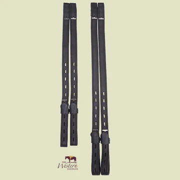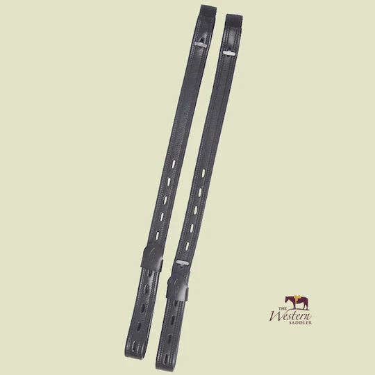Leathers have a strong nylon core to resist stretching. To avoid pressure caused by bulk under the rider’s thighs, stirrup leathers under the seat flap are not leather covered.