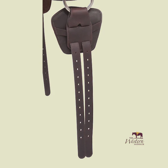 Intelligent solution! Two girth straps run through and over padding made from soft leather to avoid coat irritation or even pressure on the sensitive belly area. The girth converter can be used on all conventional Western saddles. The sometimes tiresome western rigging with tie strap and off-billet can be avoided since the converter can be used with all two-buckle girths (english girth).
