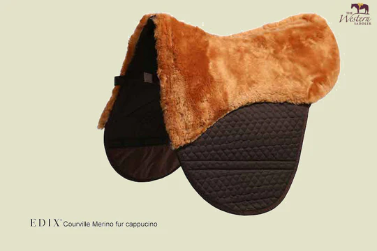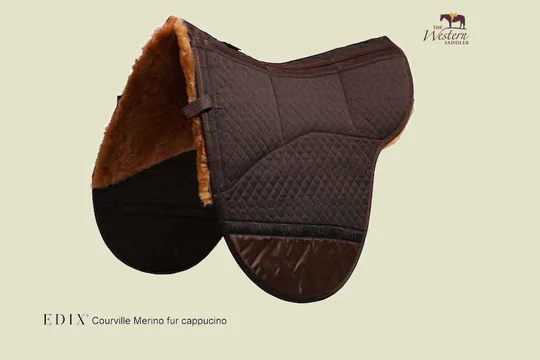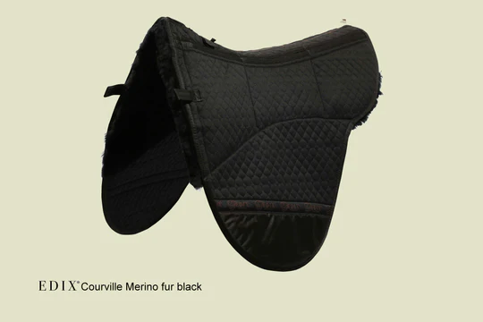 The EDIX® Courville half pad is cut in the same way as the Courville treeless saddle, but is also suitable for other treeless saddles. Made from a strong double stitched quilted cotton step fabric on the top and a Merino® fur underneath.