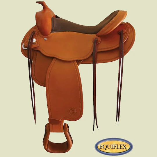Reining saddle – 16″ seat – designed for medium withers – extra full quarter bars – built on the Equiflex tree – saddle length/weight 66cm/13kg – gullet height 7 1/2″ – gullet width 7 1/4″ – rigging 7/8 single C – centre seat medium.