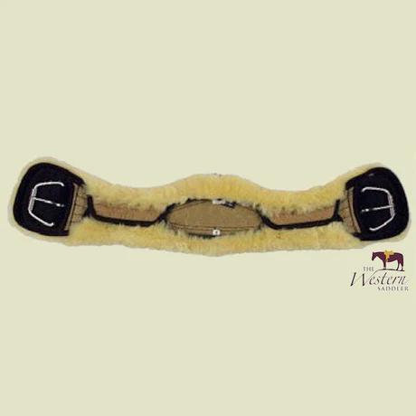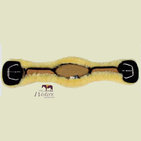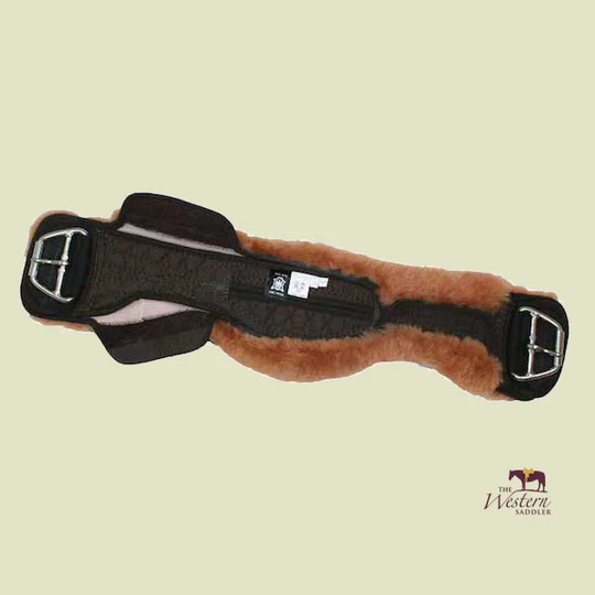 Western cinch girth – Crescent – Removable Cover – Complete made with 100% genuine sheepskin and stainless steel cinch buckles. The interior of the cinch girth incorporates Poly-flex® for optimum pressure distribution and a soft edge to protect against chafing whilst allowing freedom of movement in the elbow area. The buckle flap edges are tapered to prevent any pressure ridges. A ‘D’ ring is incorporated for use with a martingale or draw reins.